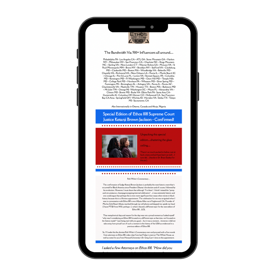 A few years later, I thought of creating Ethos 108 with a major objective — To help recognize those in the DMV and now, far beyond that initial reach. Using the Ethos 108 newsletter platform, it's become a perfect and simple way to share what influencers are doing all around and it helps to create connections for mentoring and simply, helping good people move forward with their dreams and visions. Ethos 108 also hosts Think Tank Zoom Sessions where we engage in thought-provoking conversations with those from all around, virtually.